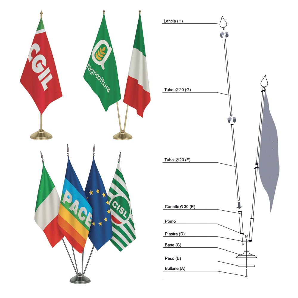 Basamento Istituzionale Portabandiera da interno 1/5 posti DRIPPY