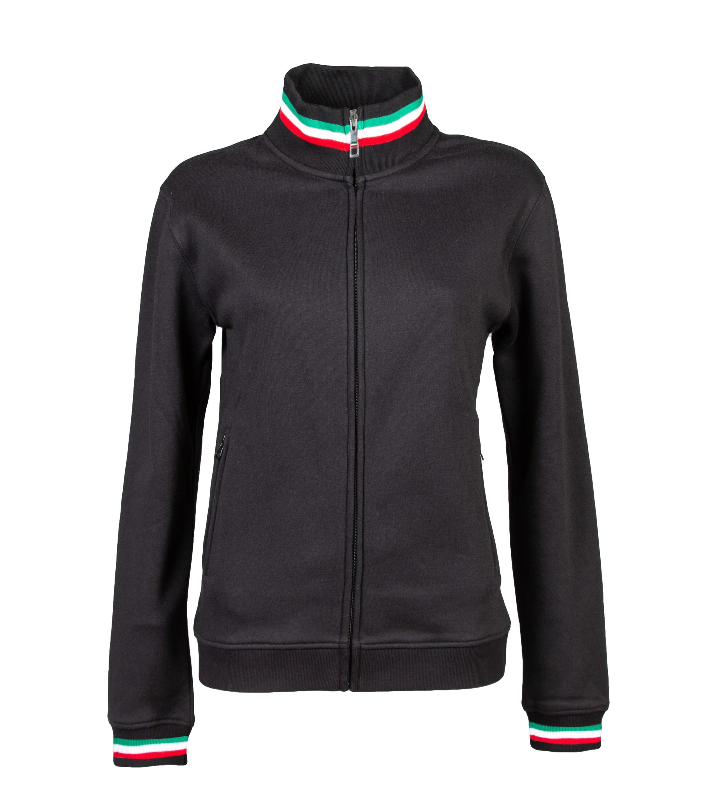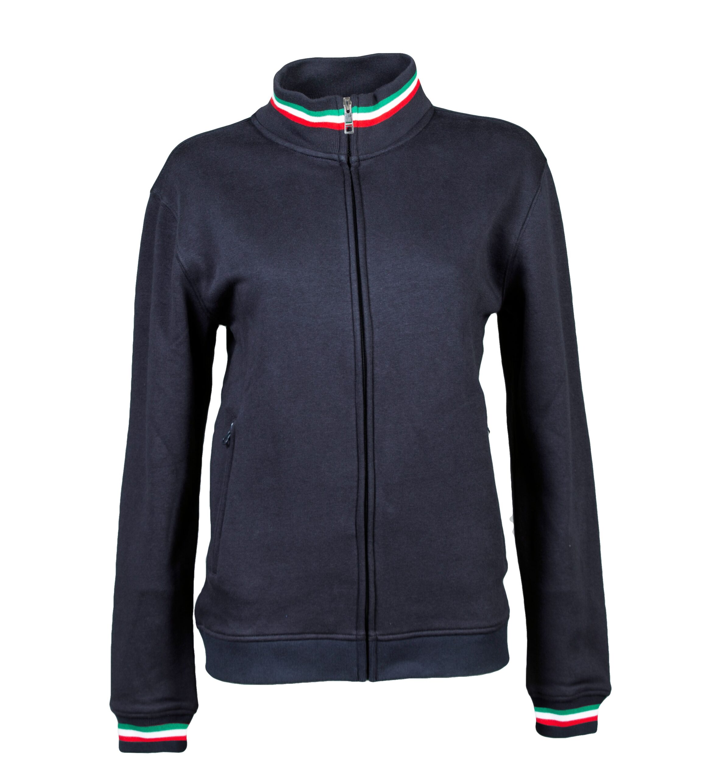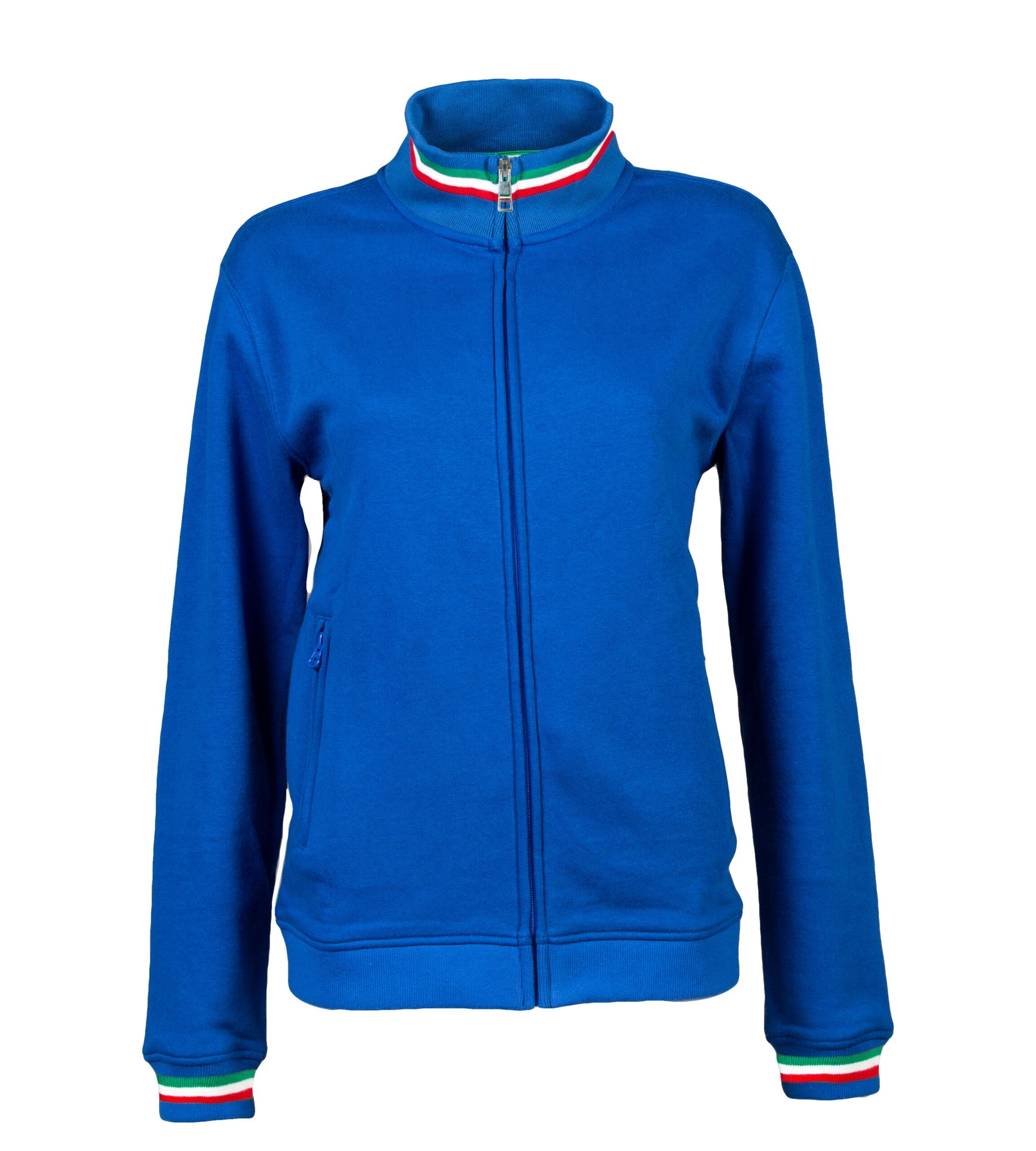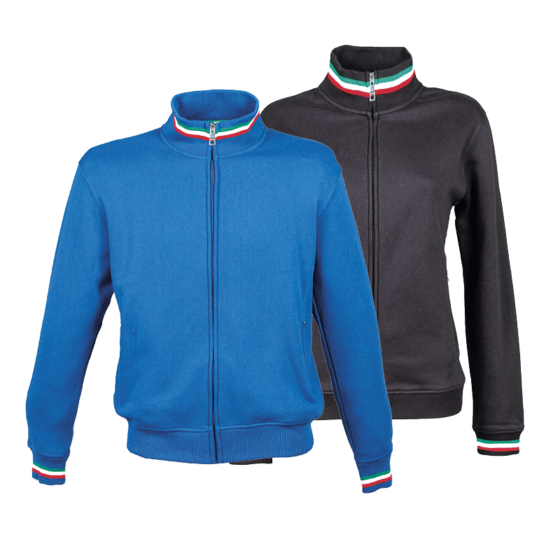 – Elastico in maglina su collo polsini e girovita con tricolore