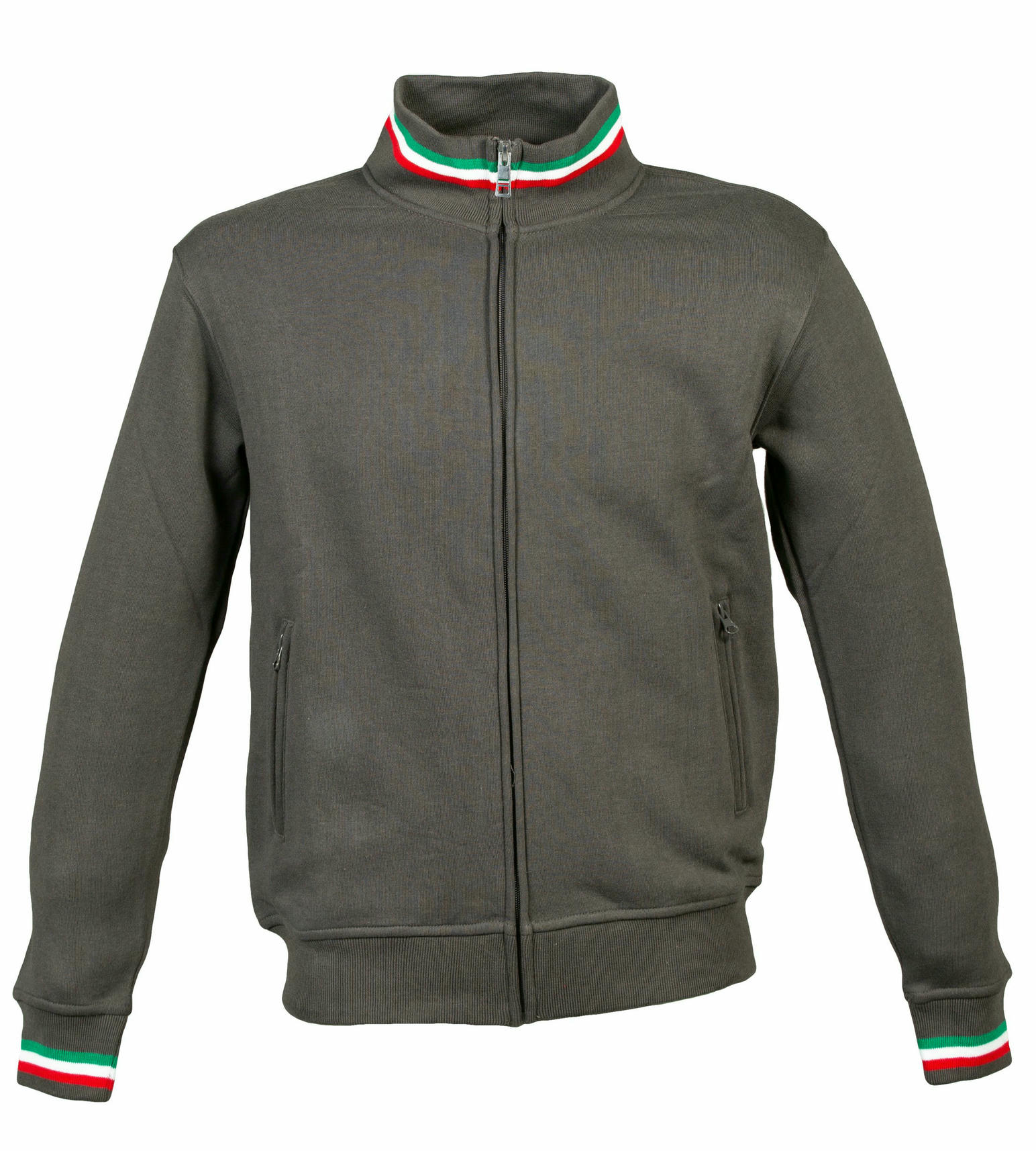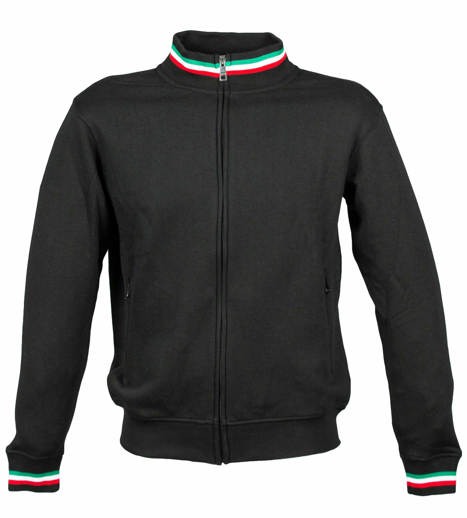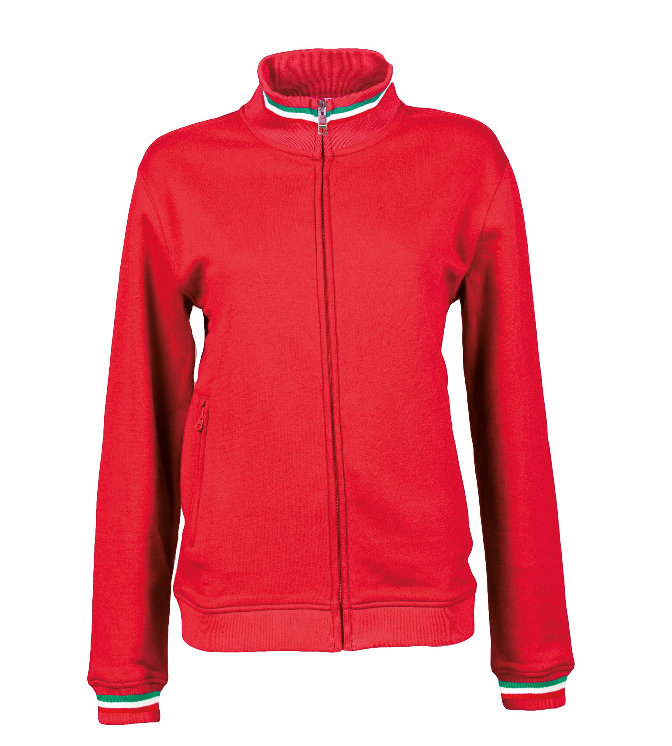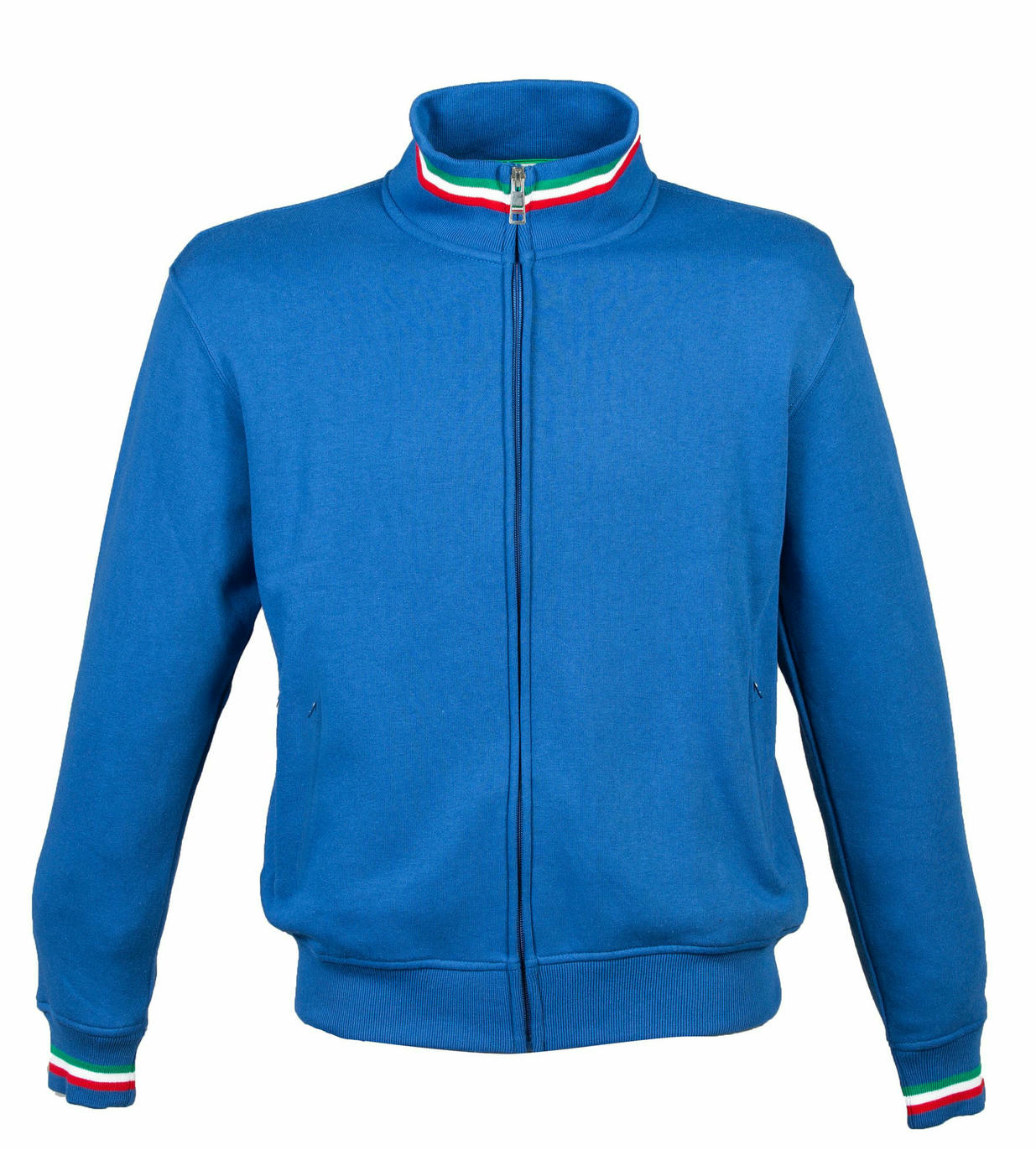 – Elastico in maglina su collo polsini e girovita con tricolore
