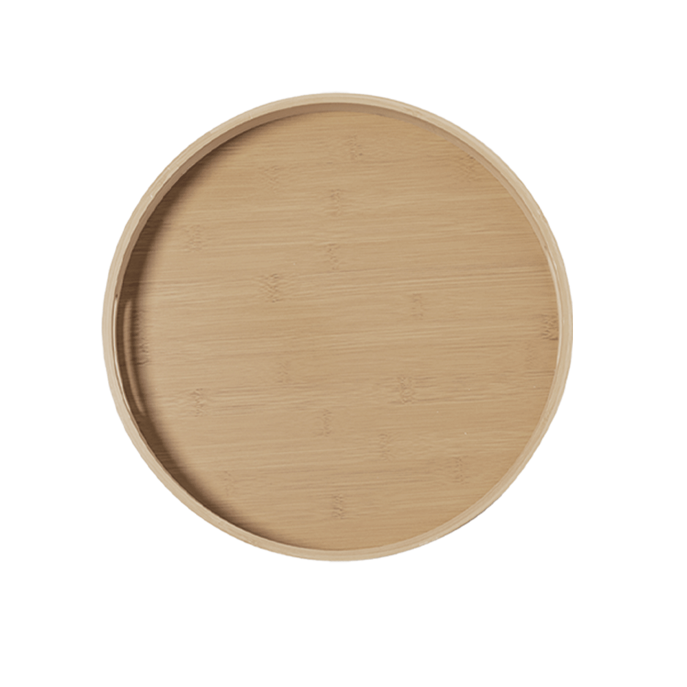– Vassoio in bambù naturale manici fustellati e bordo perimetrale di protezione (formato cm 5 x 35 Ø)